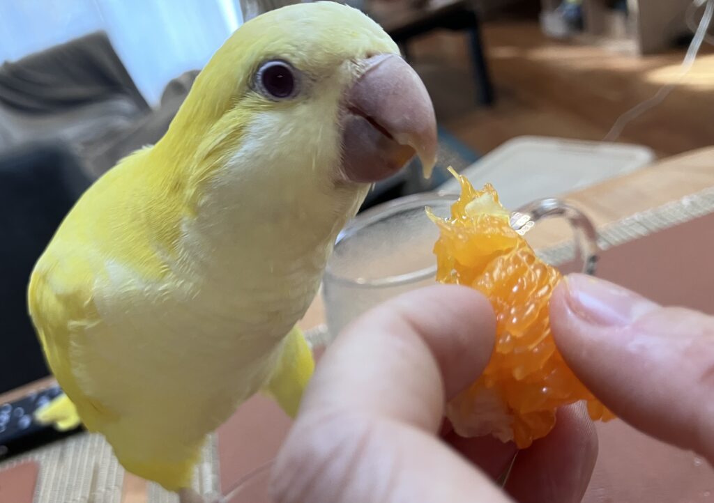 らんちゃんはおしゃべりは練習中で「おはよう」と”ことりのうた”の「ぴちくりぴー」だけ言えます。(飼い主にはそう聞こえている)