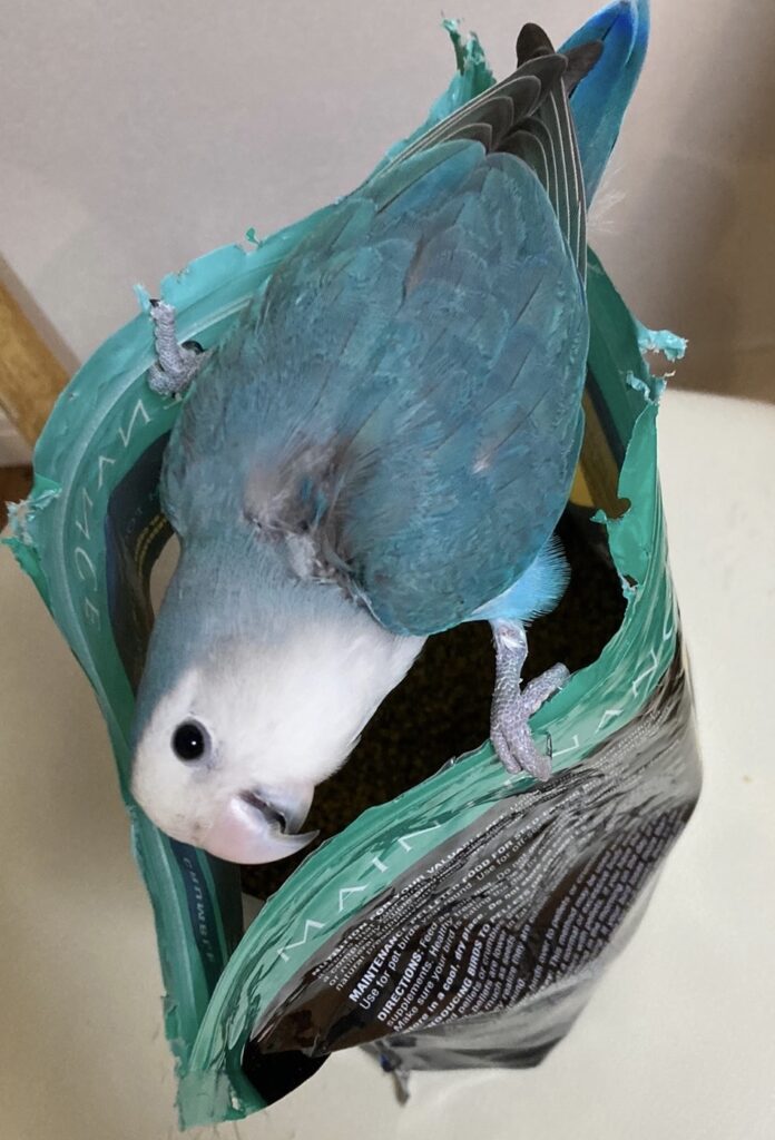 鳥の体は飛ぶために軽くする仕組みになっているため、食べたものを吸収⇒排泄と早い循環をしています。そのためエサは常に食べている必要があります。肥満や病気以外では常にエサがある状態にしてあげてください。